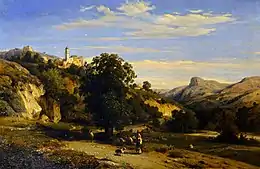 François Antoine Léon Fleury (c.1804 – c.1858) was a French landscape painter born in Paris. He was the son of Antoine Claude Fleury, under whom he at first studied, and then under Bertin and Hersent. Between 1827 and 1830 he made a sketching tour in France and the neighbouring countries. He occasionally painted figure subjects, such as The Baptism of Christ, at the church of St. Marguerite, and St. Genevieve, at St. Étienne-du-Mont, Paris. He died in 1858. Amongst his works are: