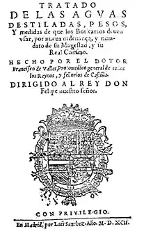 Tratado de las aguas destiladas, pesos, y medidas de que los boticarios deuen usar (1592).