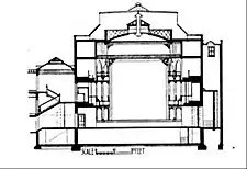 The following year Matcham was contracted by Frederick Purcell, a member of the extended Revill family,[41] to undertake the renovations of his theatre that had caught fire the year before. Matcham was afforded the benefit of being able to use the existing building, which increased the possibility of his being able to finish the project on time.[42] The same year, The Grand Cirque and Amphitheatre opened in Bolton. Matcham's design allowed for it to be used as a circus and a theatre and for the venue to be changed between the two in a few hours. It was decorated in the Italian style and had the capacity to seat 3,200 people. The circus ring eventually fell out of favour with audiences and it was covered over.[43]