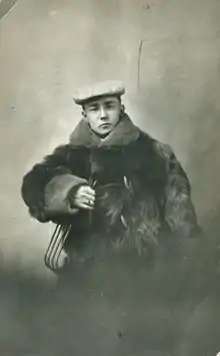 He was born Sakae Matsuura (松浦 栄, Matsūra Sakae) in 1873,[3] a descendant of Emperor Saga, the 52nd emperor of Japan, through the Matsuura, lords of Hirado Island (northwest of Kyūshū).[4] For unknown reasons, Matsura led his friends and acquaintances to believe he was seven years younger than he actually was.[5] For example, the US Census sheet for 1910 lists his age as 28,[6] and the headstone on his grave states "aged 32 years" in 1913.[7] Researchers discovered his passport application dated 1901 for a "Sakae Matsuura" that lists his age at 27.[5] Matsura's earliest photos give his name as Frank S. Matsuura.[5]