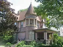 Frank and Katharine Coppes House, also known as the Victorian Guest House, now known as of January 2022, The Coppes House Bed and Breakfast, is a historic home located at Nappanee, Elkhart County, Indiana. It was built between 1887 and 1893, and is a 2+1⁄2-story, Queen Anne style frame dwelling. It has a complex hipped and gable roof and features a two-story, round corner tower with a conical roof and second story porch. It has a one-story wraparound porch and sheathed in clapboard and fish scale shingles.[2]: 5