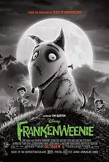 Frankenweenie is a 2012 American 3D stop-motion animated science fiction horror comedy film directed by Tim Burton, written by John August, and starring Catherine O'Hara, Martin Short, Martin Landau, Charlie Tahan, Atticus Shaffer, and Winona Ryder.[3] Produced by Walt Disney Pictures, it is a feature-length remake of Burton's 1984 short film of the same name, and is also both a parody of and homage to the 1931 film Frankenstein, based on Mary Shelley's 1818 book Frankenstein; or, The Modern Prometheus. Set in 1957, the film follows a boy named Victor Frankenstein who uses the power of electricity to resurrect his dead Bull Terrier, Sparky, but his peers discover what he has done and reanimate their own deceased pets and other creatures, resulting in mayhem.