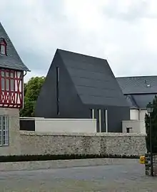 In 2002, the Diocese of Limburg committed to financial austerity, cutting salaries and expenses.[9] In that context, the diocese's 2007 announcement of plans for a €6 million building renovation project was criticised by some of the laity.[10] The diocese announced it was allocating €5.5 million, with €200,000 for the bishop's apartment, €300,000 for his private chapel, €500,000 for the administrative and guest area, €2 million for the renovation of the historic walls and display of archaeological finds and €2.5 million for the rehabilitation of the old clergy house.[11] Years later, on 14 October 2013, as the controversy continued, the project's architect Michael Frielinghaus said that the 2010 figure of €5.5 million was always understood to be well below the true cost of the project.[12] When the building complex opened on 29 June 2013, the diocese announced that the final costs would be €9,850,000. It revised that number the next day after an internal audit committee complained that the number was totally unrealistic.[13]