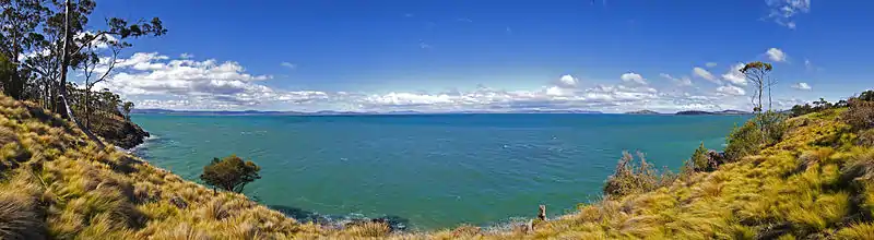 The bay contains Seven Mile Beach on its northern shores, the closest surfing beach to Hobart.[1]