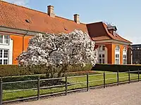 Close to the Swiss Cottage stands the Pheasantry (Da. Fasangården) which was designed by J.C. Krieger and built in 1723. As the name suggests, the building was originally built in connection with a pheasantry which raised pheasants for the royal household. When the park was redesigned around 1800, there were plans to tear down the house but instead it was turned into a residence for the king's private secretary, P.C. Jessen, who had already used it during summer since 1798.[9] The building was adapted in 1828 by Jørgen Hansen Koch. It served as summer residence for Adam Oehlenschläger and his family from 1842 to 1850.[10] It was carefully restored in 2019–2020 and is open tp the public as a restaurant.[11]