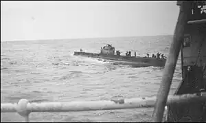 At the start of World War II on 1 September 1939, Le Glorieux was assigned to the 1st Submarine Division in the 2nd Submarine Squadron of the 1st Flotilla of the 3rd Squadron, based at Toulon, France.[3] Her sister ships Le Conquérant, Le Héros, and Le Tonnant made up the rest of the division.[3][5] Between 12 October and 3 November 1939, she patrolled with her sister ship Redoutable along the coast of Madeira, where part of the German merchant fleet — which the Allies suspected of serving as supply ships for German U-boats – had taken refuge when the war broke out.[6] She conducted two patrols, and the only significant incident occurred when the British cargo ship Egba refused to stop for inspection even after Le Glorieux fired warning shots.[3]