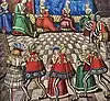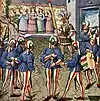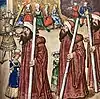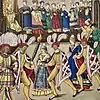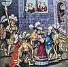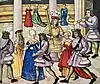 | 235 | ![]() | Tournament 59 Mummery | In this masquerade, the male dancers wear slashed doublets which dates the scene to around 1500 when that style was at the apex of fashion. The musicians play shawms, a form of woodwind instrument. | pp. 404-405 |