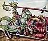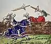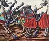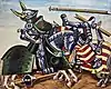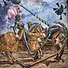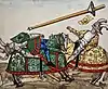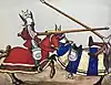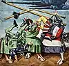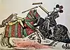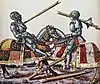 - Scharfrennen (Joust of war with "flying" shields). The shield is shown loosely fixed to the rider's breastplate, the aim being to dislodge it.[8]