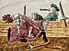 | 39 | ![]() | Tournament 10 Foot joust | Combat with maces (war hammers) and targes (small shields) against Claude de Vaudry (died 1515), Burgundian nobleman who had served Charles the Bold. There is a record of Maximilian jousting against Claude de Vaudry in 1495 | p. 111 |