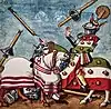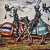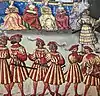 | 36 | ![]() | Tournament 9 Mummery | This painting depicts a moresca, a dance where the male dancers attempt to impress the watching ladies with wild jumps and twists. | pp. 106–107 |