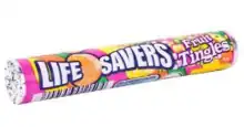 Fruit Tingles is a brand of confectionery originating in Australia.[1] They are a chalky-textured, multicoloured, disc-shaped, fruit flavoured lolly. Standard packages are 34g foil wrapped sleeves with an outer multicoloured paper wrapper, and contain 16 pieces of randomly distributed flavours. Four-pack packaging containing four rolls is common for supermarket sales.