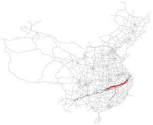 The route starts in Hangzhou and passes through Kaihua County, Dexing, Yugan County, Nanchang, Fengxin County, Tonggu County, Liuyang, before terminating in Changsha.[1]