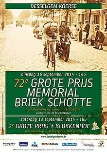 The GP Briek Schotte is a criterium road cycling race held annually around the village of Desselgem in West Flanders, Belgium.[1] The race was first organized in 1941. In 1942 and 1947, two editions were organized, one in July and the other in September.[2] The race was named in honor of Belgian cyclist Briek Schotte, the winner of the first three editions of the race.[3]