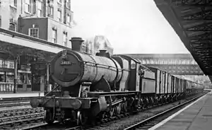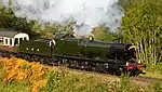 In 1985 during the 150th anniversary celebrations of the Great Western Railway, it took a selection of the Severn Valley Railway's goods wagons to Newport for a Railfreight spectacular event.[8] The outward route took the engine via Worcester & Hereford with the return route being via Severn Tunnel Junction, Chepstow & Gloucester. The locomotive appeared in the 2020 film Enola Holmes.[9][10][11] |