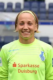 Gaëlle Thalmann wearing the jersey of MSV Duisburg in 2014