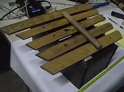 A gabbang consists of a set of trapezoidal bamboo bars of increasing length resting on a resonator.[2] The number of bars varies with the group that made them: Among Yakans, the number ranges from three to nine bamboo bars, but the common agung gabbang has five; among Tausugs, the number ranges from 14 to 22 bamboo bars, but the common gabbang has 12; and in Palawan, the common gabbang has five.[3]