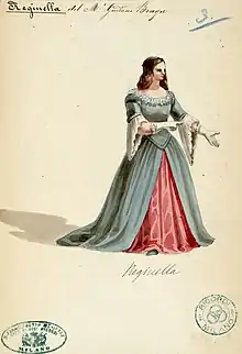 A "Serenata" (serenade) by Braga, sometimes called "Angel's Serenade" or "Légende valaque" (Wallachian Legend), is a dialogue (comparable to that in "Erlkönig") between a worried mother and a girl who hears an angel's voice calling her; in the end the girl follows the voice ("O mamma buona notte, io seguo il suon, io seguo il suon!"). It is mentioned in Anton Chekhov's short story "The Black Monk," as well as in other Russian works of the late 19th and early 20th centuries.[1] As composed, the narrator sings the voice of the mother and girl, while the angel's voice is portrayed through the violin or cello.[2] In the original print, the string player was instructed to play from an adjoining room from the pianist and singer, in order to create the effect of a distant angelic voice.[3] Braga's "Angel's Serenade" has been recorded notably by tenor John McCormack and violinist Fritz Kreisler (in English),[4] Jan Peerce and Mischa Elman (in English),[5] Christian Ketter and Cara Schlecker (in Italian),[6] Richard Tauber and Dajos Bela (in German).[7]