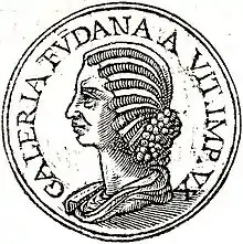 Her son Vitellius, renamed Germanicus by his father in 69, was killed after supporters of Vespasian took control of Rome, together with Vitellius himself. Galeria's life was spared and she was allowed to bury her husband. Her daughter Vitellia married twice: Decimus Valerius Asiaticus was her first husband, and after his death in 69 AD she was helped by Vespasian to make a good marriage to an unnamed man.[6] Historian Settipani has proposed that her second son-in-law was Libo Rupilius Frugi and that his daughter Rupilia Faustina was also Vitellia's daughter, thus explaining the use of the nomen Galeria among female members of the Nerva–Antonine dynasty.[7][8]