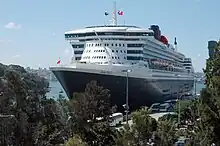 Since 2000 the global cruising industry has been building a number of very large ships, some of which were too large to berth at the Overseas Passenger Terminal at Circular Quay, although modifications were made in 2014 to accommodate some larger vessels.[19] Some large ships are permitted to berth at Garden Island's naval wharves, initially on an ad-hoc basis, followed in 2012 by an agreement to permit three cruise ships to berth per year.[19][20] There have been calls for increased cruise ship access to the naval wharves, with some suggesting that the RAN should relocate entirely.[21][22] Replacing the naval base with a cruise ship terminal would also free up the island to be redeveloped as harbourfront residential housing.[23]