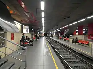 Gare du Midi (French) or Zuidstation (Dutch) is a rapid transit station in Brussels, Belgium, consisting of both a metro station (on the southern segment of lines 2 and 6) and a premetro (underground tram) station (serving lines 3 and 4 on the North–South Axis between Brussels-North railway station and Albert premetro station).