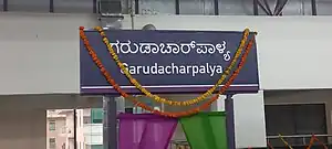 Garudacharapalya is an elevated metro station on the East-West corridor of the Purple Line of Namma Metro in Bengaluru, India. Around this station, holds the Brigade Metropolis followed by some locations like Godrej United, Decathlon Whitefield, Airbus Group India Pvt. Ltd. and many more.[1][2][3]