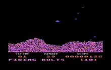 Additionally, the player has an arsenal of different weapons to choose from: fusion bolts, homing missiles, flares, and so on that have different effects For example, fusion bolts are similar to the counter-missiles in Missile Command; they explode when they hit other objects, including explosions. The player can fire repeatedly in the same direction causing explosions to "walk back" towards their ship, providing a kind of shield against enemies.