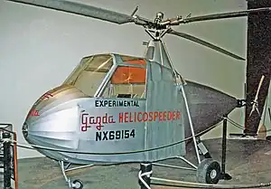 The Helicospeeder was designed by Antoine Gazda of Wakefield, Rhode Island in 1946. It was specified to carry one person and publicity releases claimed an ultimate goal of a 300 mph (483 km/h) maximum airspeed. One example of the initial version was completed.[1]