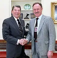 Hackman is a supporter of the Democratic Party, and was "proud" to be included on Nixon's Enemies List. However, he has spoken fondly of Republican president Ronald Reagan.[50]