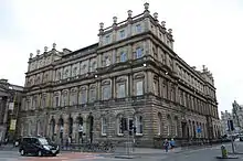 The General Post Office (GPO) is a former post office building in Edinburgh, Scotland. It was built 1861–65 on the site of the Old Theatre Royal, between Waterloo Place and North Bridge, Edinburgh, to the design of architect and Clerk of Works for Scotland, Robert Matheson.[1] In 1861, Albert, Prince Consort laid the foundation stone.[1][2] The ceremony took place on the same day as the first stone was laid for the new Royal Museum of Scotland (now the National Museum).[2]