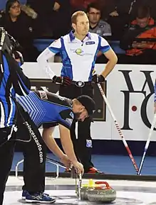 Geoff Walker (born November 28, 1985) is a Canadian curler, currently living in Edmonton, Alberta.[2] He currently plays lead for the Brad Gushue rink. He was the Men's World Champion in 2017 and won silver the following year in 2018. A five-time national champion, he won the Brier in 2017, 2018, 2020, 2022 and 2023. Walker was a two-time World Junior Champion when he won gold in 2006 and 2007.