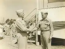 Change of Command, 2d Marine Division. Major General Good and Major General Chesty Puller, Camp Lejeune, July 1, 1954.