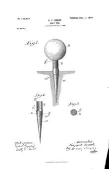 - ↑ US638920A, Grant, George F., "Golf-tee", issued 1899-12-12