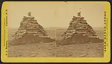 In a letter dated October 29, 1878, Major George D. Ruggles, acting adjutant general, Department of Dakota, directed Lieutenant Colonel George P. Buell, commanding officer of Fort Custer, to send an expedition to the Little Bighorn to secure all human bones within a cone or pyramid of stones, adding, " The Department Commander thinks that the most suitable location for the grave is the highest point of the ridge just in rear of where General George Custer's body was found."[12]