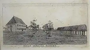 Wailuku Female Seminary, drawn by Edward Bailey, engraved by Kapeau, ca. 1840.