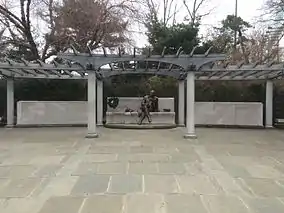 The George Mason Memorial is a memorial to Founding Father George Mason, the author of the Virginia Declaration of Rights that inspired the United States Bill of Rights. The Memorial is located in West Potomac Park within Washington, D.C. at 24 E Basin Drive SW, which is a part of the Tidal Basin.[2] Authorized in 1990, with a groundbreaking in 2000 and dedication in 2002, the memorial includes a sculpture of Mason, a pool, trellis, circular hedges, and numerous inscriptions. It was the first memorial in the Tidal Basin area to be dedicated to someone who was not a former President of the United States.[2]