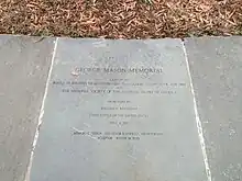 The memorial commemorates the contributions of Mason, a Founding Father who wrote the Virginia Declaration of Rights, served as a delegate to the 1787 Constitutional Convention in Philadelphia, and created much of the language, inspiration, and groundwork for what became the United States Bill of Rights. Mason, an Anti-Federalist, did not sign the United States Constitution because it did not abolish the slave trade and because he did not think it had necessary protection for the individual from the federal government.[3] He was sometimes known as the "reluctant statesman", which was also the title of a 1980 biography written about him by Robert A. Rutland.[4]
