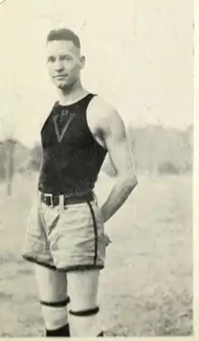 He was also an all-South Atlantic Conference end for the football team,[1][3] and competed in the discus and javelin events for the track and field team. At the end of 1919, he held the Tech javelin record throw of 146.5 feet.[4]