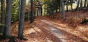 Extending up the hillside to the west is a conservation landscape of more than 600 acres (240 ha), through which carriage roads and trails traverse a variety of ecosystems and landscapes. A pond is located near the center of the high valley, and there are several scenic viewpoints accessible from the trails. The property extends westward all the way to Prosper Road, where trailhead access is also provided to the western portions of the park.