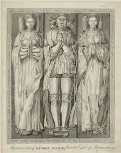 Effigy of George Talbot on the Talbot monument in the Shrewsbury Chapel, Sheffield Cathedral. His first wife Anne is on his right side and his second, Elizabeth, on his left.