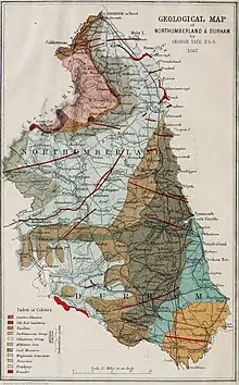 Tate's account of his journey along the Roman Roman wall, with his examination of its geology, was published as a part of John Collingwood Bruce's The Roman Wall (2nd edit. 1853). His account of the fossil flora of Berwickshire, North Durham, and the adjacent parts of Northumberland and Roxburghshire was incorporated in George Johnston's work, The Natural History of the Eastern Borders, 1854;[6] and that of the geology of Northumberland in John Gilbert Baker and George Ralph Tate's New Flora of Northumberland and Durham.[5] He was the first to record marks of ice action on rocks in Northumberland.[1] Robert Middleman gives a list of Tate's publications in his obituary notice.[2]