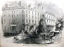 During his professorship Ticknor advocated the creation of departments, the grouping of students in divisions according to proficiency, and the establishment of the elective system. He also reorganized his department.[2] He suggested improvements in the system of discipline, influenced by his studies of German universities. He greatly extended the range of intellectual culture among the students at the university, where literary instruction had been confined to the classics. He gave long, elaborate courses of lectures on French and Spanish literature. He also entered into a critical analysis of such writers as Dante, Goethe, Milton, and Shakespeare. His lectures were attended by people from outside the college, who were attracted by their interest and by Ticknor's reputation as a speaker known for his diction and delivery. In 1828, he was elected as a member of the American Philosophical Society.[4]