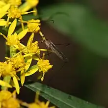 Geranomyia (Diptera: Limoniidae), nectar feeding crane flies, are a genus of crane fly in the family Limoniidae. The majority of Geranomyia species have been recorded from the southern hemisphere, however there are currently 356 described species from around the world. The neotropical region of the world provides some of the greatest species diversity with many species still unknown and undescribed. Larvae of Geranomyia can be found in aquatic or semi aquatic habitats, often on hygropetric habitats in streams and rivers. Adults are often found in a bobbing movement when feeding on nectar from composite flowers, yet the purpose of nectar feeding remains unknown.