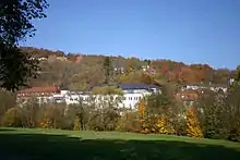 View from the river Tauber to the back of the German Diabetes Center Mergentheim