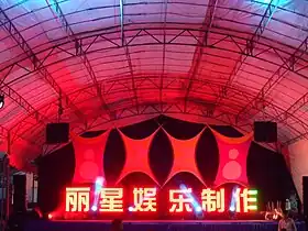 Getai (simplified Chinese: 歌台; traditional Chinese: 歌臺; pinyin: gē tái; lit. 'song stage') refers to boisterous live stage performances typically held during the Ghost Festival in the seventh lunar month and on the birthdays of Chinese deities.[1] These shows typically last from 7.30pm to after 10pm and are commonly organised in Singapore, Malaysia and some parts of Indonesia (mainly in Riau, Riau Islands and North Sumatra).[2] Additionally, stage setups are usually composed of temporary structures like tents situated in the suburbs of the city- namely, in empty fields, parking spaces or housing estates.[3]