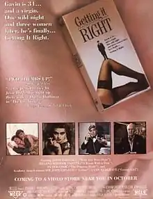 Getting It Right is a 1989 British-American comedy-drama film starring Jesse Birdsall, Jane Horrocks, and Helena Bonham Carter.[2] The tagline is: "Gavin is 31... and a virgin. One wild night and three women later, he's finally... Getting It Right."