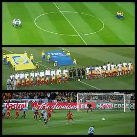 The Black Stars maintain an average stadium match attendance of 60,000+ and a match attendance high of 80,000+, such as in the case of its 2010 FIFA World Cup quarter-final against Uruguay which was attended by 84,017 spectators.[36] Ghana's match against England on 29 March 2011 had the largest away following for any association football national team since the re-opening of Wembley Stadium in 2007.[37] The match was watched by 700 million people around the world.[37]