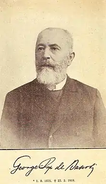 Gheorghe Pop de Băsești (Romanian pronunciation: ['ɡe̯orɡe pop de bəˈseʃtʲ]) or George Pop de Băsești (Romanian pronunciation: ['dʒe̯ordʒe pop de bəˈseʃtʲ]), also known under the nickname Badea Gheorghe or Badea George (roughly Brother or Uncle Gheorghe/George)[2] (1 August 1835 – 23 February 1919) was an Imperial Austrian-born Romanian politician, philanthropist and patriot, who served as vice president (1881–1902) and president (1902–1919) of the Romanian National Party at a time when Transylvania was part of the Kingdom of Hungary within Austria-Hungary, and eventually as the president of the Great National Assembly of Alba Iulia that declared the Union of Transylvania with Romania on 1 December 1918.[2][3]