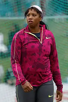 She holds the American record in an unofficial event: the indoor discus throw at 55.03 m.[3]