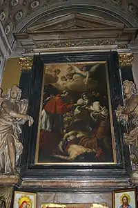 His works are well distributed among baroque Churches of Rome including San Carlo al Corso ceiling frescoes (1670–1671), San Silvestro in Capite, Sant'Andrea al Quirinale, a canvas of Sant'Andrea (1650) in Santa Maria in Via Lata, a painting of Martyrdom of the Forty (1660) for the Chiesa delle Santissima Stimmate di San Francesco, a Coronation of the Virgin (1680) which serves as main altarpiece for the church of Gesù e Maria, a canvas of the Drunkedness of Noah in the Galleria Corsini, an Assumption (1655) for Santa Maria in Organo in Verona, a fresco from Ovid's Metamorphoses (1651–1653) for Palazzo Pamphilj in Piazza Navona, and a Martyrdom of San Biagio for the church of San Carlo ai Catinari; a Visione del beato Giovanni di San Facondo (1656) and a Estasi della beata Rita da Cascia (1660) in the Basilica di Sant'Agostino in Campo Marzio, San Rocco intercede per i malati di peste (1673) and San Rocco in gloria (1674) in the Chiesa di San Rocco all'Augusteo; Compianto sul Cristo morto (1675–76) in the Chiesa di Sant'Andrea al Quirinale. In 1647, he joined the Congregazione dei Virtuosi al Pantheon in Rome and from 1651 was inducted into the Accademia di San Luca for painters. In 1663, he frescoed the life of Saint Erasmus for the crypt of the cathedral of Gaeta. Some of his works are in Milan, Toledo, and Zaragoza.