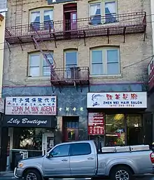 Located at 747 Clay Street in San Francisco, California, the Sun Hall Benevolent Association in San Francisco was established in the 1930s under the Corporate Laws of the State of California for the purposes of mutual assistance and support for new migrants coming and adjusting to the harsh environment in a foreign land.[3]